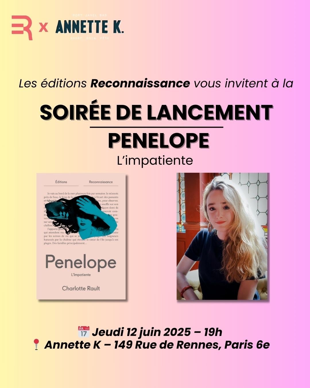 RDV avec Charlotte Rault, autrice et primo-romancière pour une pré-vente exceptionnelle de l’édition limitée de Penelope, l’Impatiente. Plus d’informations ici